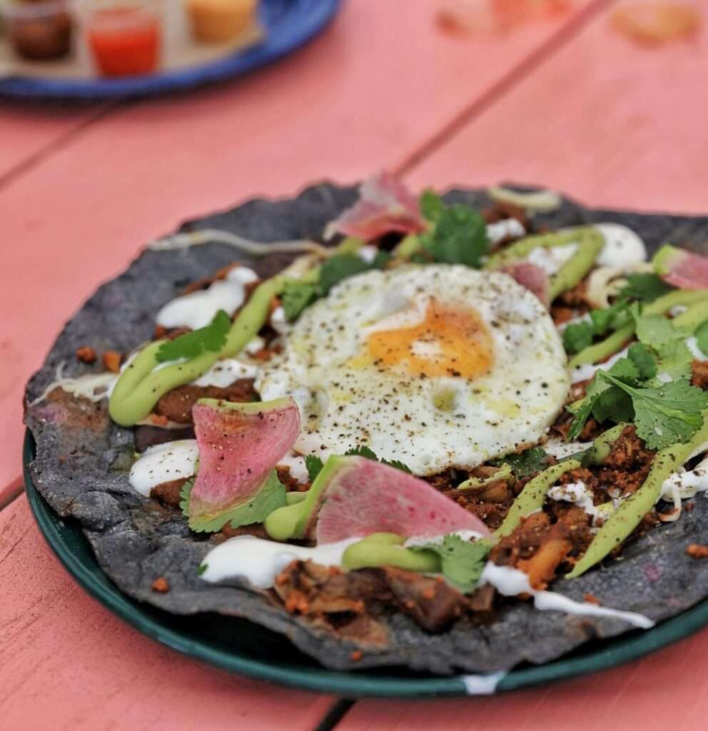 The counter-service setup at Nixta Taqueria means you can show up alone without it feeling weird, but that’s not the main reason to come here. The flavors cooked up by owners Sara and Edgar are out of this world, and it hasn’t gone unnoticed. This humble taqueria has been awarded the prestigious Michelin Bib Gourmand status. Grab a seat on the patio, order a cold michelada, and tuck in to tasty bites like juicy tacos and heirloom tomato tlayuda.