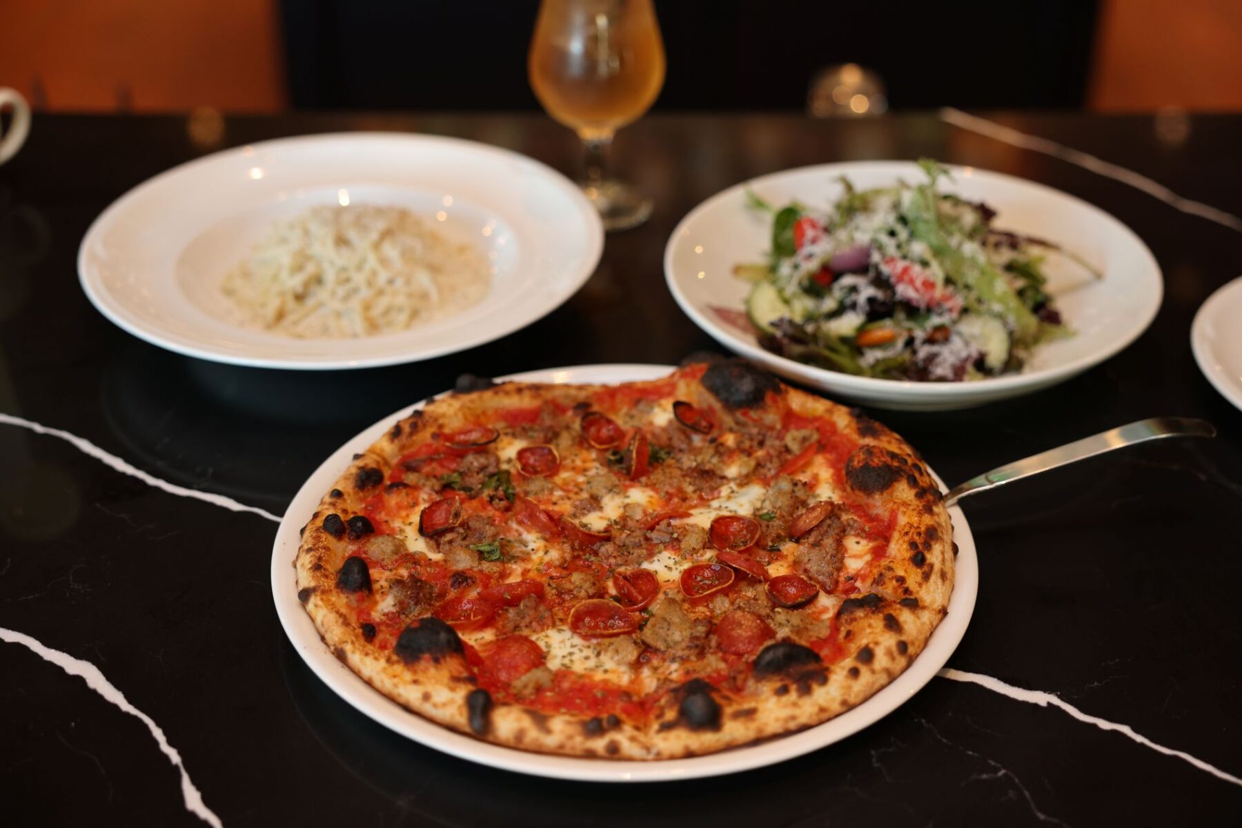 The dough is where the real flex happens. It is a three day process using Rouge de Bordeaux grain grown in North Texas and milled daily in-house. A biga pre-ferment, careful hydration, controlled fermentation, and a dough lab that sounds more NASA than pizzeria all come together to produce something quietly impressive. This pizza is so delicious that makes you stop talking mid-sentence, which is the highest compliment.
